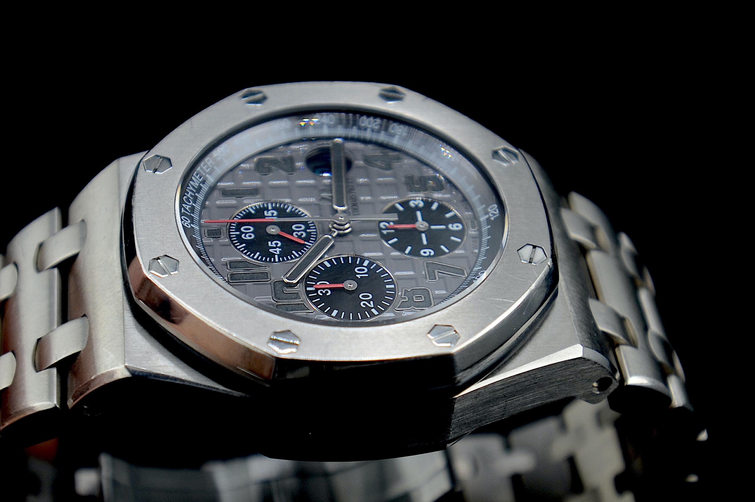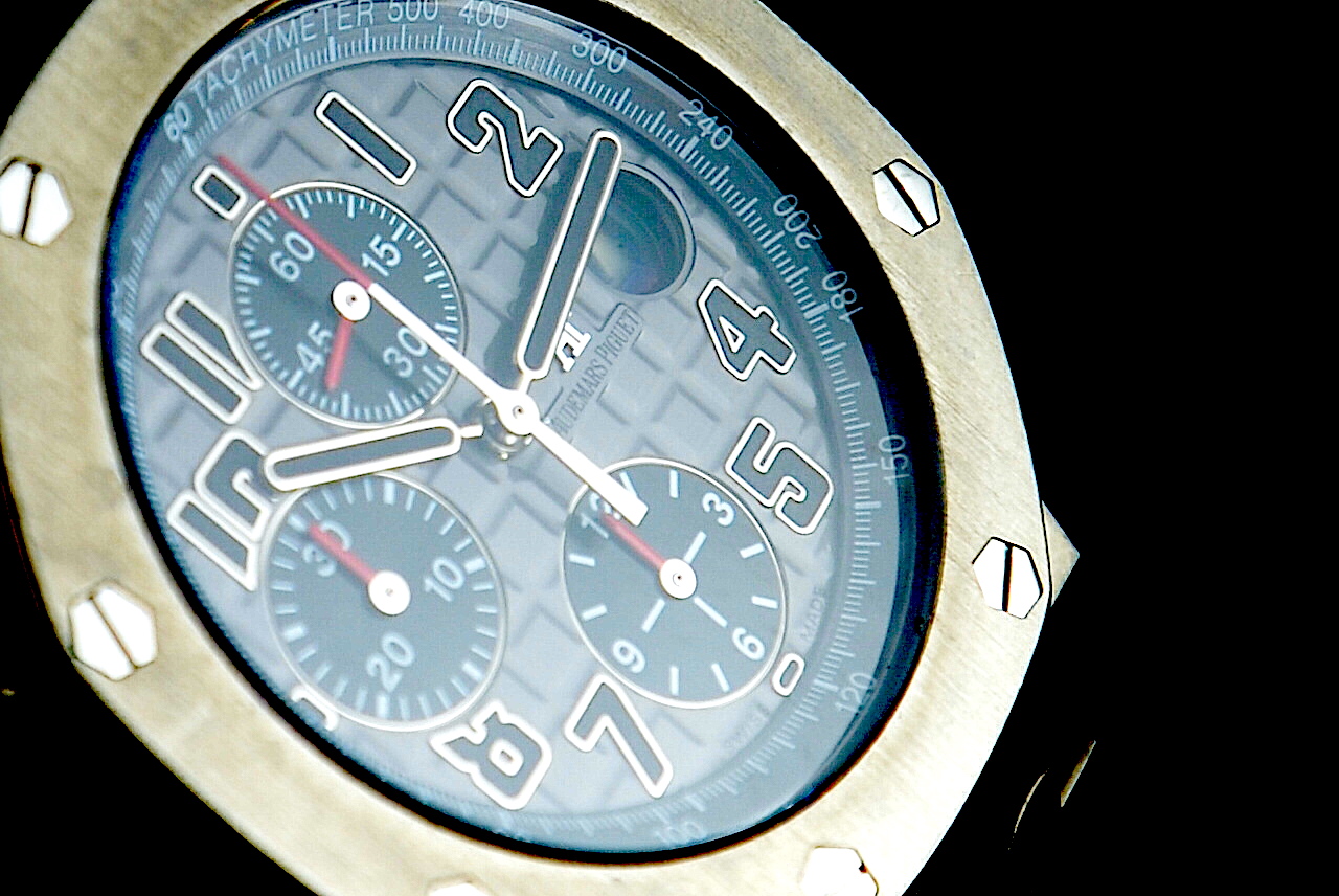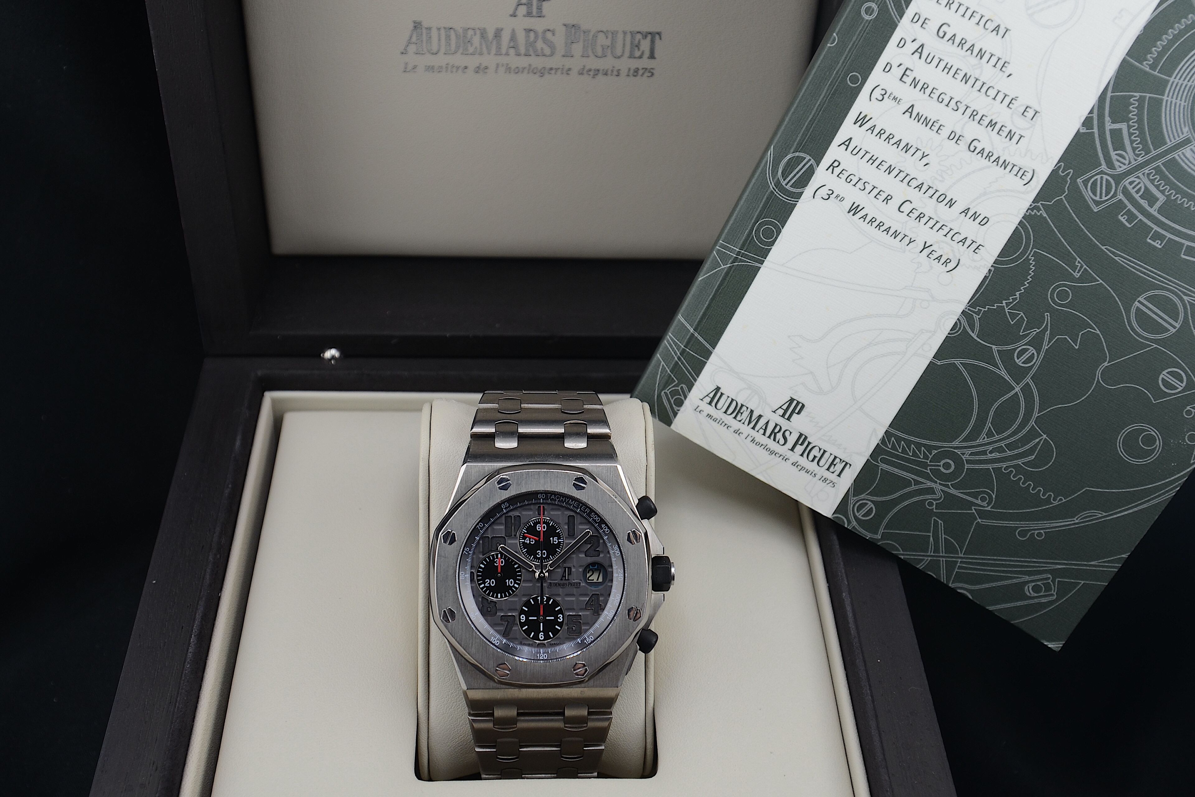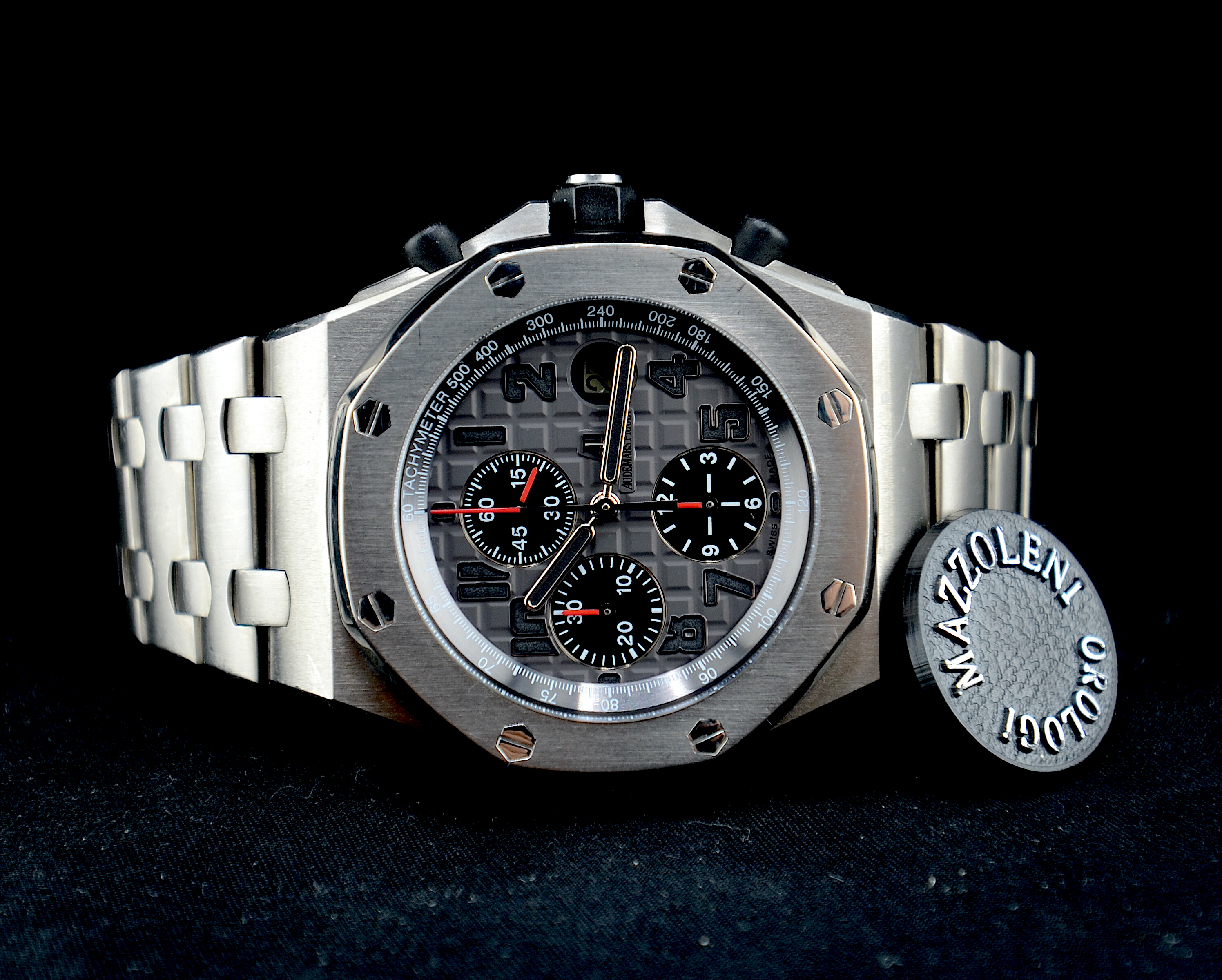 orologio scatola e garanzia 2010 Audemars Piguet italiana, revisione luglio 2025 ,cassa titanio quadrante antracite dim 42 movimento automatico cal 3840 orologio leggerissimo dovuto al materiale del titanio ......diciamo che adesso dopo le quotazioni irragenovoli dei modelli Audemars Piguet siamo tornati a delle quotazioni accettabile per modelli unici e prestigiosi come questo modello ...