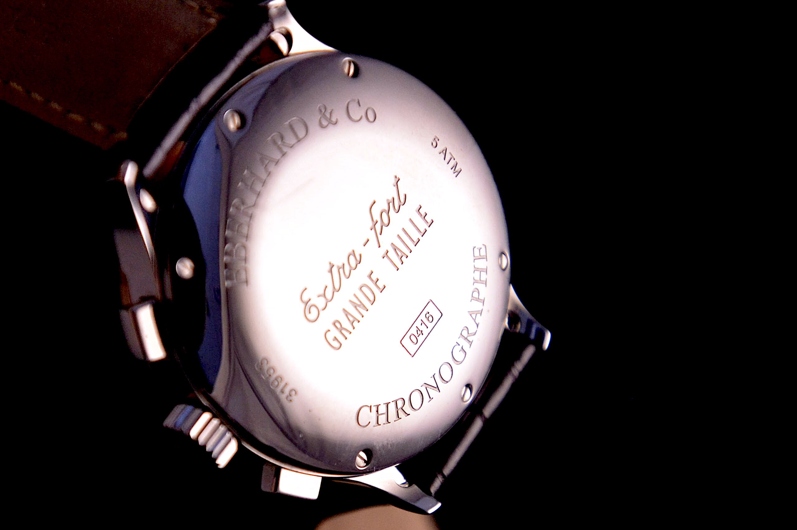 orologio scatola e garanzia originale xtra Fort Grande Taille ruota a colonna diametro 41 mm. Impermeabilità 50 M Vetro Zaffiro Bombato Antiriflesso fondo lucido serrato da sei viti con incisioni cinturino con fibbia ArtiglioneLa linea Extra-Fort è una delle più storiche e iconiche di Eberhard & Co., introdotta negli anni ’40.Il nome deriva dal sistema di protezione rinforzato del pulsante cronografico (“extra forte”), e nel tempo è diventato sinonimo di eleganza sportiva e qualità meccanica svizzeraNegli anni 2000 Eberhard ha rilanciato la collezione in chiave moderna, mantenendo l’estetica classica ma con movimenti automatici di nuova generazione, quadranti raffinati e casse lucidate di dimensioni più contemporanee (39–41 mm)Il 31953 è uno dei modelli Extra-Fort più apprezzati per il suo equilibrio tra eleganza classica e funzionalità cronograficaLa versione 2011 rientra tra le più curate nelle finiture, con un quadrante a rilievo di grande eleganza.È molto ricercato da chi ama orologi meccanici tradizionali ma non vuole ricorrere ai marchi più inflazionat iOrologio in condizioni eccellenti, completo di scatola e garanzia original iperfetto per chi ama l’orologeria svizzera tradizionale.