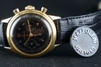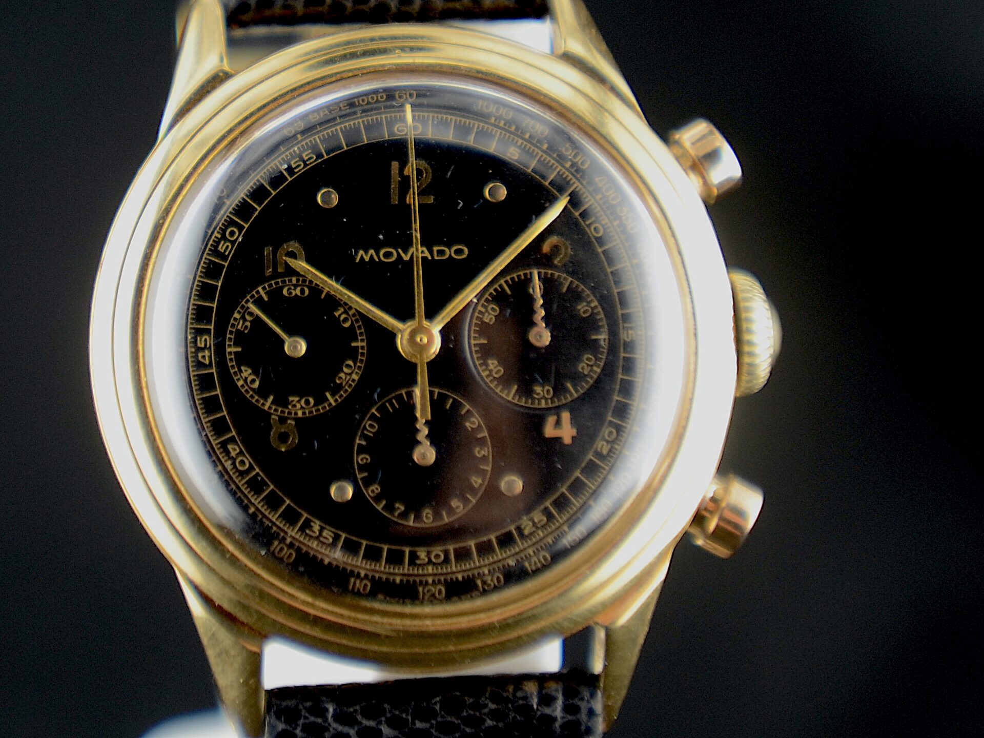 orologio perfetto con scatola e garanzia MAZZOLENI OROLOGI 12 MESI La referenza 9038 corrisponde a uno dei cronografi più ricercati di Movado movimento a carica manuale sviluppato in casa Movado (non Valjoux), oggi molto apprezzato dai collezionisti cronografo Disposizione contatori:small seconds → ore 9minuti cronografici → ore 3ore cronografiche → ore 6 Diametro tipico: circa 35 mm Oro giallo 18 kt 750, con punzoni svizzeri) Anse dritte, design sobrio ed elegante Pulsanti cronografici a pompa, quadrante nero con grafica dorata è originale con la referenza 9038 generalmente più raro e prezioso dei quadranti champagne o argento. numeri seriali di produzione A98....indicano Produzione stimata: 1947–1952.Appartiene al primo periodo di produzione dei cronografi M95 Quadrante nero (molto raro) se sei un appassionato vieni solo per vederlo vederlo perché la foto non da giustizia ad questo orologio !!!