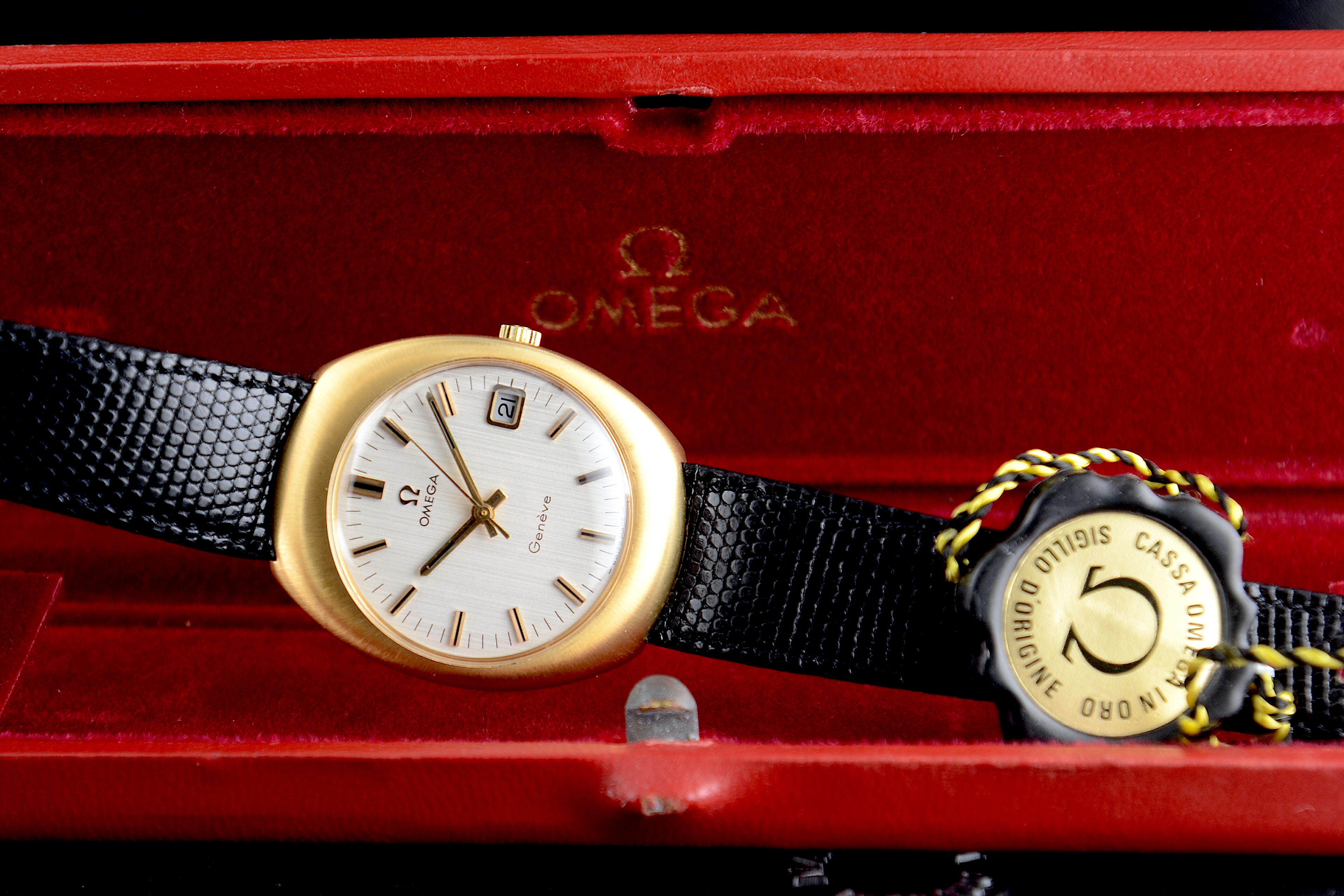 omega automatico anni 70 scatola omega originale mai indossato La referenza 132-90010 cassa a due corpi, forma tonneau, oro 18K satinato, fondello a pressione, quadrante argenté, indici applicati a bastone, logo applicato, indicazione della data, lancette a bastone e secondi centrali Movimento: calibro a carica manuale 613, con 17 rubini Diametro: circa 34 mm (senza corona)L’orologio veniva venduto con cinturino in pelle e fibbia placcata oro, insieme a sigillo e targhetta originali (“accompagnato da sigillo e targhetta Omega PERCHE RITENGO CHE TUTTI ESEMPLARI NOS ( NUOVI MAI INDOSSATI )è interessante per un collezionistan 132-90010 NOS (cioè con cinturino originale, sigilli, targhette, non indossato) può avere un appeal rilevante per vari motiviÈ un esemplare d’epoca in oro 18K, materiale che per gli orologi vintage Omega ha valore intrinseco e storico Lo stato “NOS” enfatizza la rarità: molti vintage sono stati indossati, lucidati, restaurati; un NOS originale con elementi originali è molto raro e ricercato Per un collezionista di Omega vintage “da polso elegante” (non diver, non cronografo), questo modello rappresenta un pezzo interessante e poco comune con tutti i suoi elementi originali, rappresenta un pezzo interessante per un collezionista che apprezza autenticità, rarità e la storia del marchio. e visto al prezzo che viene proposto pensando al oro 18kt ..... e la rarita del pezzo .