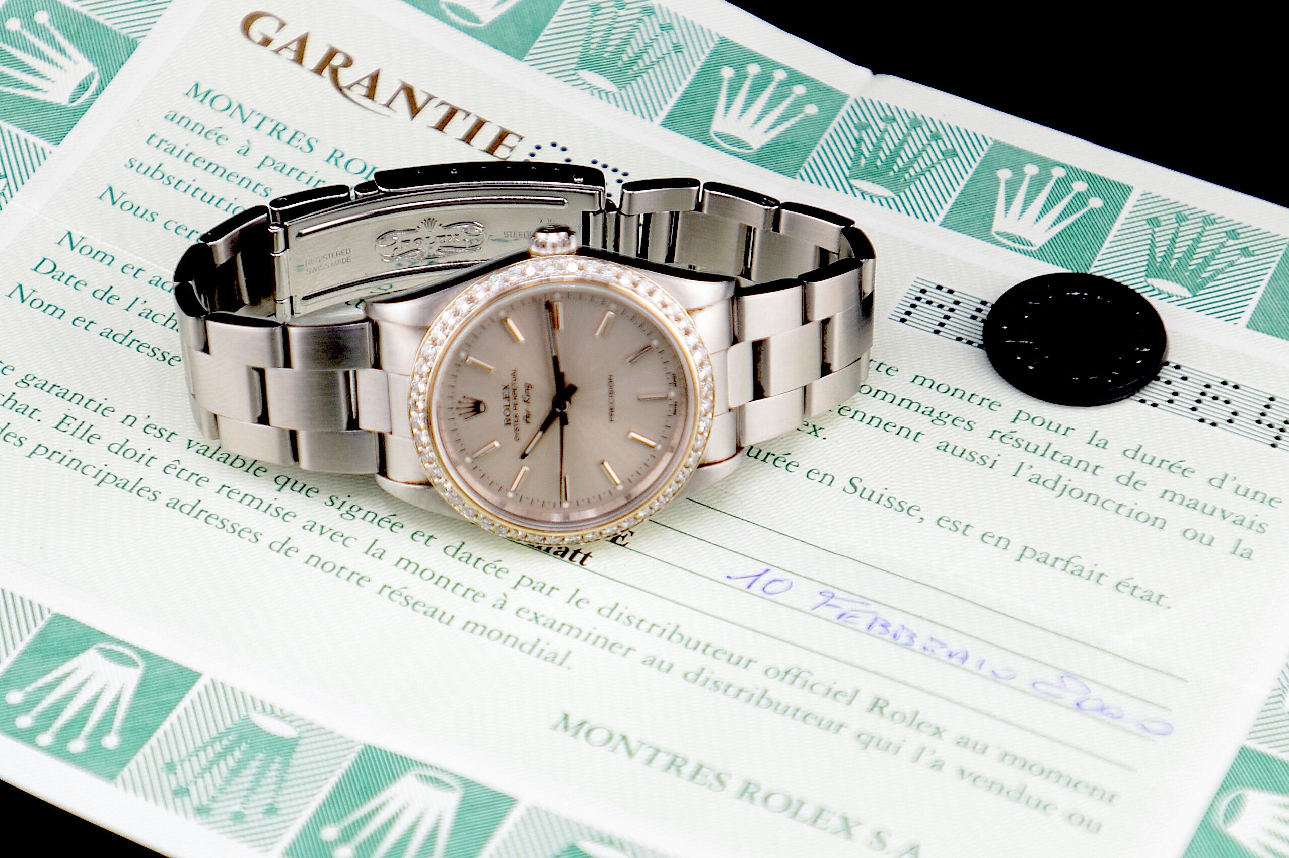 OROLOGIO SCATOLA MAZZOLENI OROLOGI E GARANZIA ROLEX ORIGINALE ANNO 2000 CASSA IN ACCIAIO BRACCIALE OYSTER GHIERA ORO BIANCO CON DIAMANTI ( AFTER MARKET )