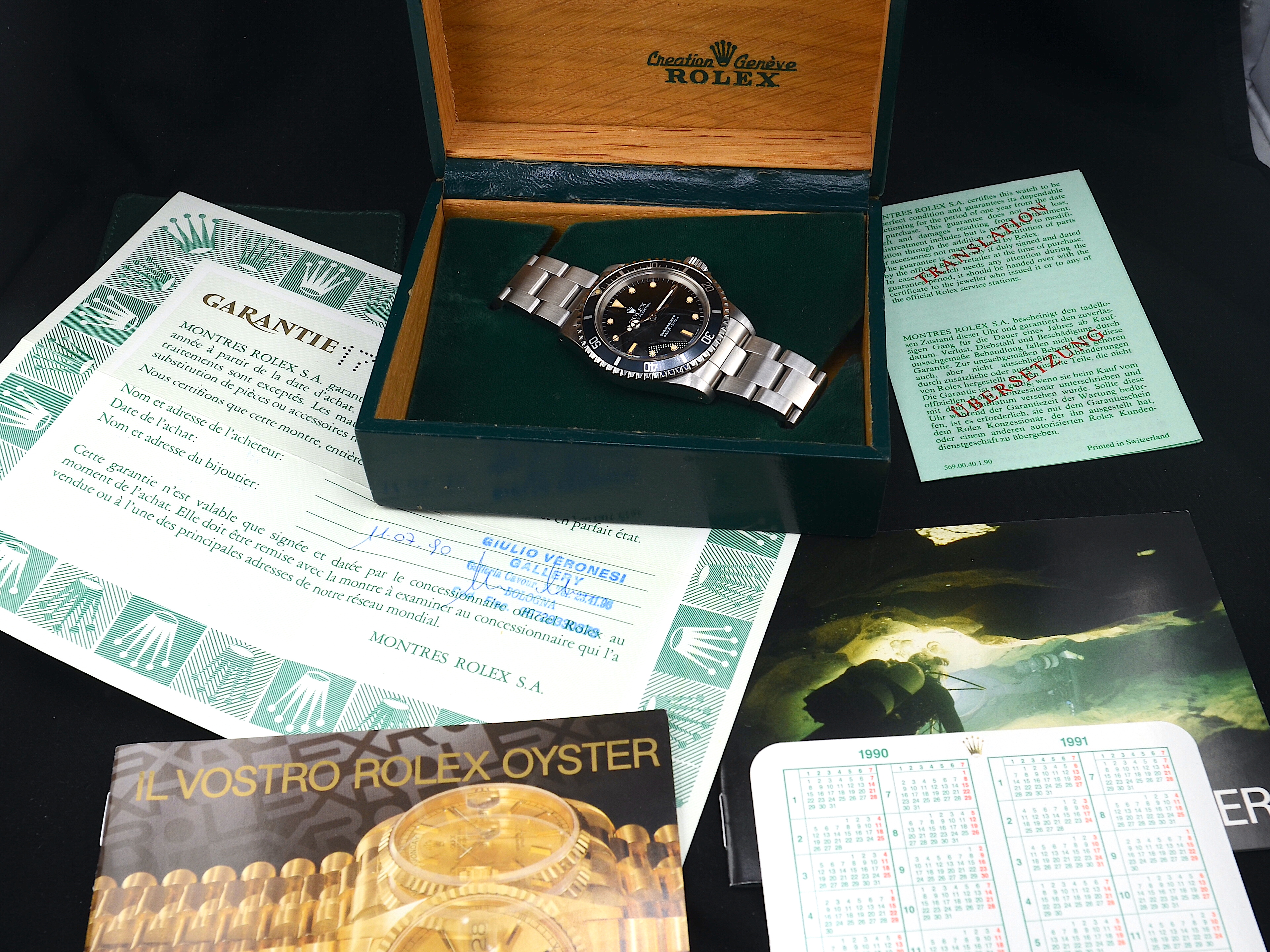 La referenza 5513 è un Rolex Submariner “No Date” (senza datario), prodotto da Rolex dal 1962 al 1989 ed è uno dei modelli vintage più iconici e ricercati.È conosciuto per il suo design classico, impermeabilità e meccanica robusta; molti collezionisti lo apprezzano proprio per il suo valore storico.leggono spesso con una lettera seguita da numeri. La lettera “L” nei seriali indica che l’orologio è stato prodotto intorno alla fine degli anni ’80 Full set e Garanzia significa che l’orologio è venduto con tutti gli accessori originali di fabbrica:scatola originale Rolexmanualigaranzia originale (pape rs)eventuali tag originali Garanzia italiana di solito indica che il certificato di garanzia è stato emesso da un concessionario ufficiale Rolex in Italia, non semplicemente un certificato di rivenditore generico Avere la garanzia originale aumenta significativamente il valore collezionistico rispetto a un orologio senza certificati.questo 5513 ha il seriale L leggono spesso con una lettera seguita da numeri. La lettera “L” nei seriali indica che l’orologio è stato prodotto degli anni ’1989 uno dei ultimi poi vetro plastica