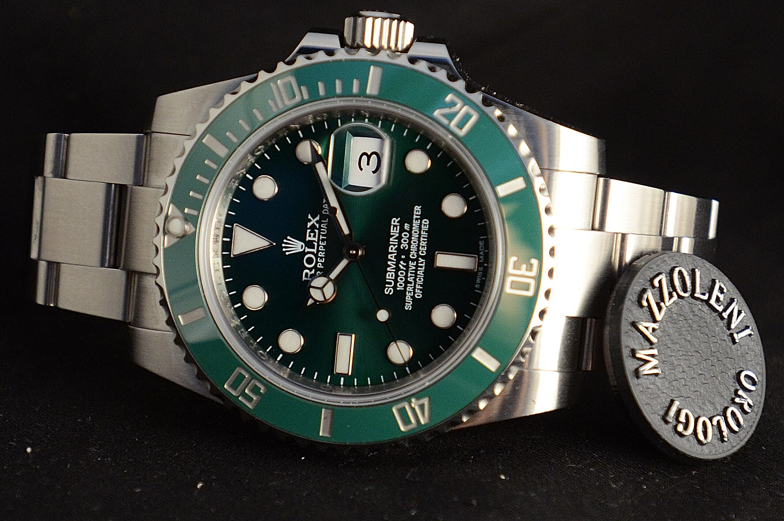 OROLOGIO SCATOLA GARANZIA ROLEX Carica Automatico Meccanismo 3135 calibro di base. Riserva di carica 48 h Impermeabile 30 ATM Materiale lunetta Ceramica Quadrante Verde.... orologio uscito di produzione anno 2020 con quotazioni sempre orologio di molto interesse