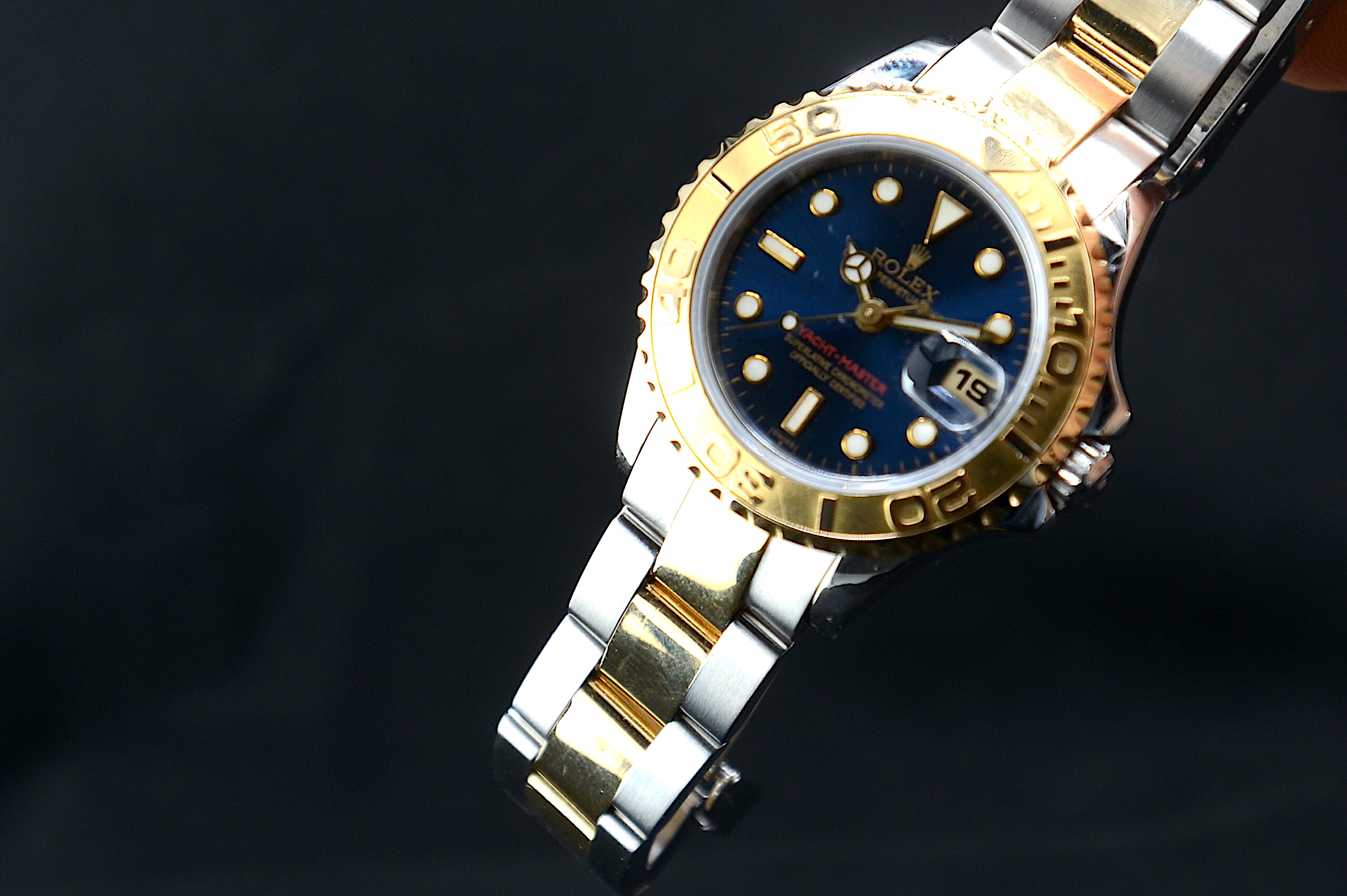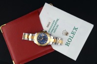 l Rolex Yacht-Master 69623 è un elegante orologio sportivo di lusso in versione lady (29 mm), prodotto tra fine anni ’90 e primi 2000. orologio scatola e garanzia italiana rolex È molto apprezzato per il suo mix tra sportività e raffinatezzaCassa: 29 mm Materiale: acciaio + oro giallo 18 kt (Rolesor) Movimento: automatico Rolex calibro 2135 Impermeabilità: 100 metri Vetro: zaffiro Funzioni: ore, minuti, secondi, data Lunetta: girevole bidirezionale in oro con numeri in Look sportivo ma elegante, meno “tecnico” del Submariner Tipica lunetta Yacht-Master con numeri rialzati Quadrante : blu Bracciale Oyster bicolore (acciaio + oro) Anche se nasce come modello femminile, viene spesso indossato come unisex su polsi piccoli 69623 è un Rolex classico e raffinato, perfetto se cerchi un orologio di lusso discreto, con dettagli in oro, a un prezzo relativamente accessibile nel mondo Rolex.