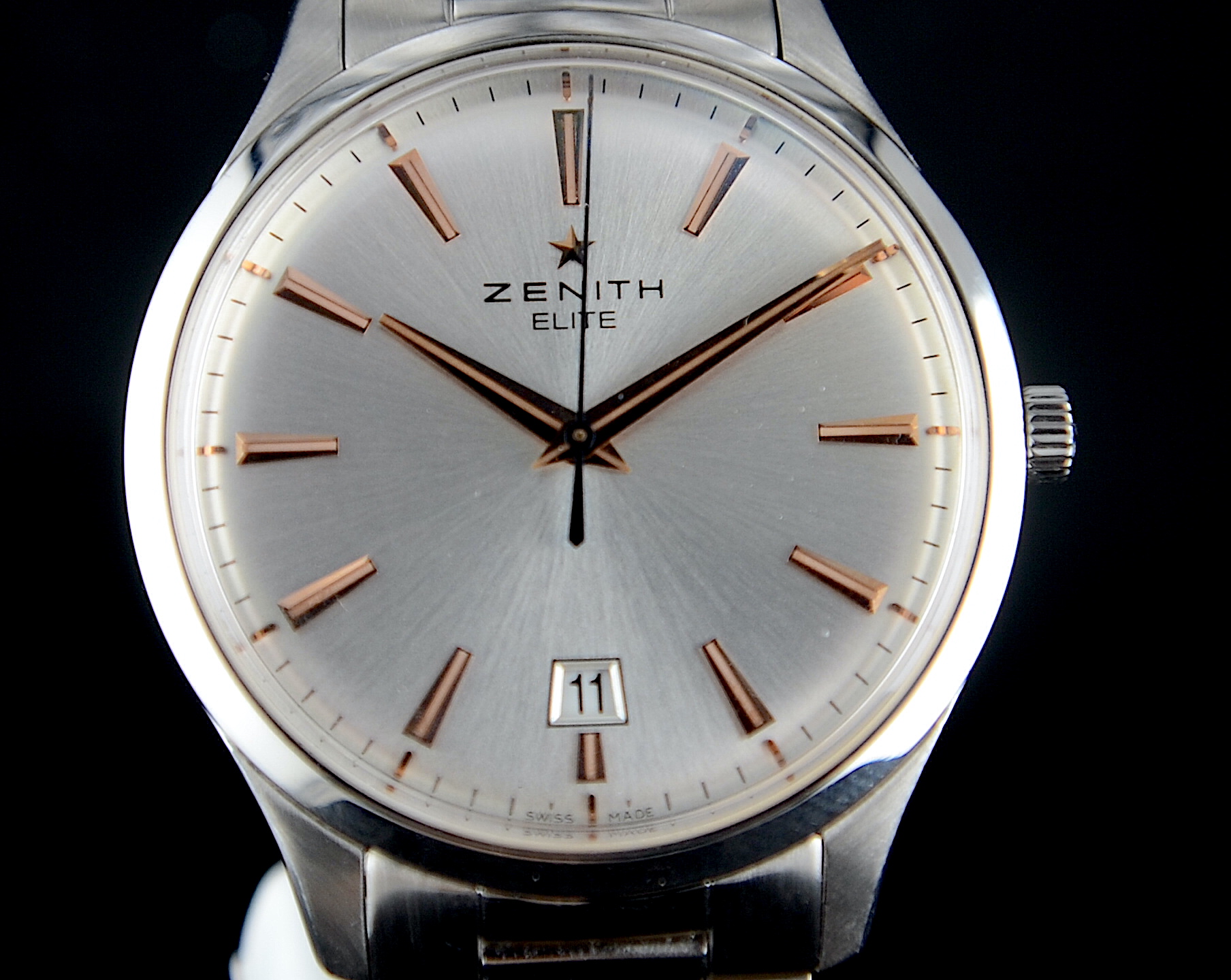 L’orologio ELITE Classic CON SCATOLA E GARANZIA Mazzoleni Orologi presenta una cassa da 40,5 mm in acciaio inossidabile, un quadrante argento effetto “Soleil” e un cinturino in alligatore e acciaio . Con le sue proporzioni ultrasottili e le sue straordinarie prestazioni, il calibro di manifattura automatico ELITE offre una riserva di carica di 50 ore Movimento automatico per antonomasia, il calibro ELITE sviluppato e realizzato in-house fa parte della Manifattura Zenith da oltre 25 anni. Con le sue proporzioni ultrasottili e le sue straordinarie prestazioni, l’ELITE offre una riserva di carica di 50 ore, grazie al suo meccanismo a carica automatica, e presenta numerose complicazioni.